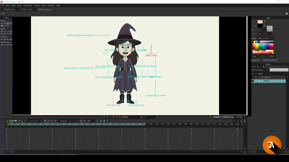 Title: WITCH - Premium Moho Pro Character Rig (Halloween Special!) - 180 degree turn